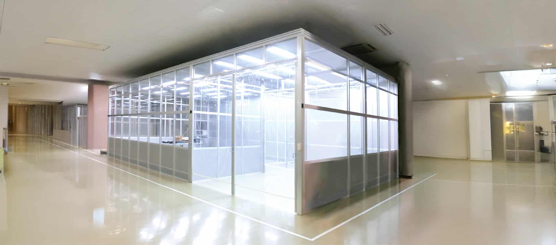 「E-Roomプラス」は、沖縄の工場や施設の既存設備内に設置可能な、後付けタイプの簡易クリーンルームです。