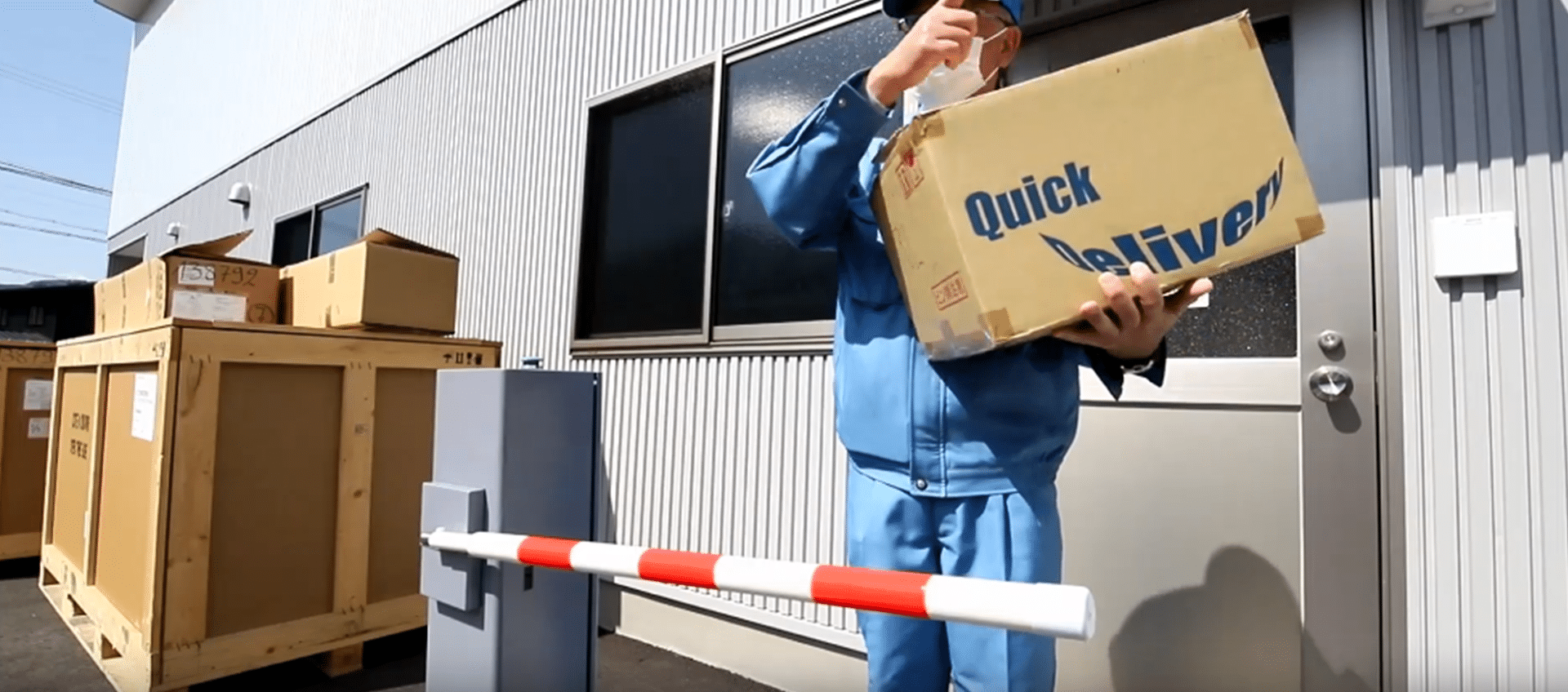 赤外線センサーの検知でゲートバーがストップする安全設計