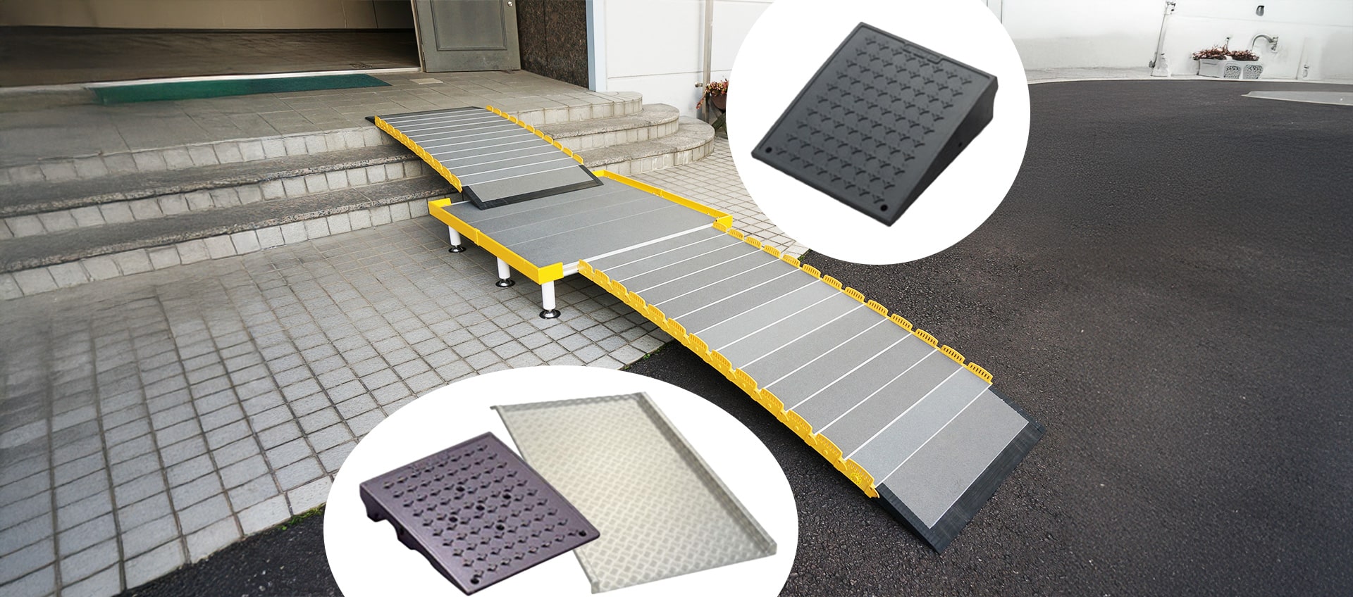 頑丈な3.5mm厚のアルミ製で、台車や車イスの通行もスムーズです。段差のある場所に設置するだけで、手軽にご利用いただけます。