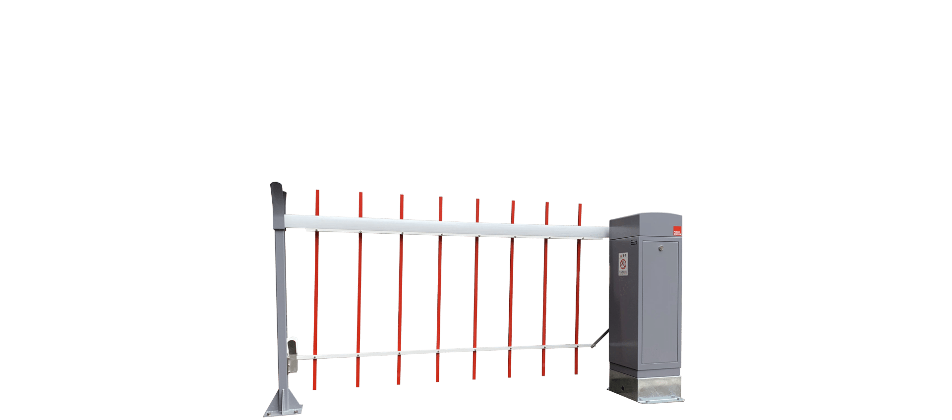他製品と比べて、簡単に人がくぐり抜けられない柵型のゲートバーです。